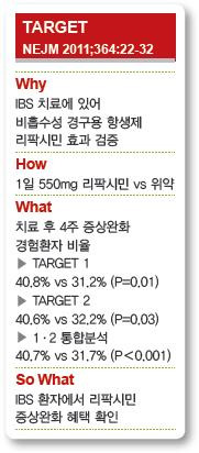 미국 시더스-사이나이의료원의 Mark Pimental 교수는 대규모 임상연구(TARGET 1, TARGET 2, TARGET 3)를 통해 IBS 환자에서 리팍시민의 효과를 설명했다.