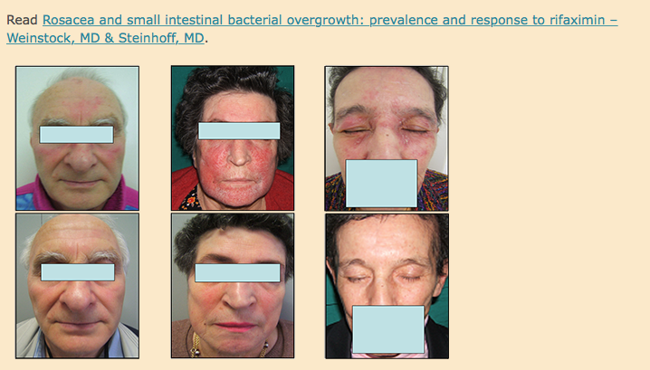 The 2008 study by Italian investigators found that SIBO was present in 52 of 113 (46%) consecutive rosacea patients. The FDA-approved antibiotic rifaximin (Xifaxan®) was given to 28 of these 52 patients. Of these 28 patients, 20 (71%) experienced clearing of their rosacea lesions and 6 (21%) had significant improvement in their overall rosacea symptoms.