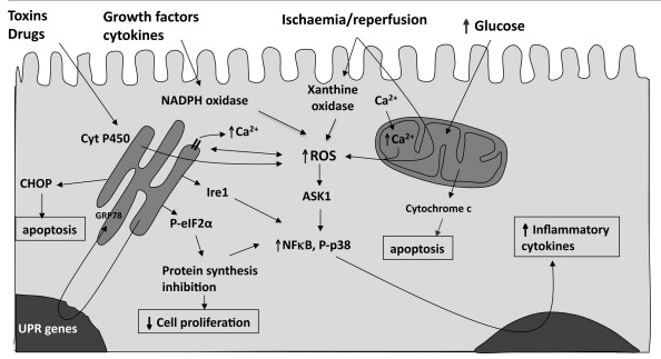 Because ROS can activate so many cell processes, it is not surprising that oxidative stress rarely occurs in isolation, but is usually accompanied by other forms of cell stress. As explained above, close interactions take place between ROS, mitochondrial and ER function, mediated through Ca2+ release that potentially constitute a feed–forward system.23
