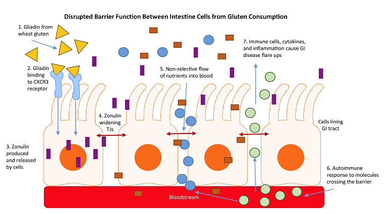 Lammers KM, Lu R, Brownley J, Lu B, Gerard C, Thomas K, Rallabhandi P, Shea-Donohue T, Tamiz A, Alkan S, et al. Gliadin induces an increase in intestinal permeability and zonulin release by binding to the chemokine receptor CXCR3. Gastroenterology 2008; 135:194-204 e3; PMID:18485912; http://dx.doi.org/10.1053/j.gastro.2008.03.023 [PMC free article] [PubMed] [CrossRef] [Google Scholar][89]