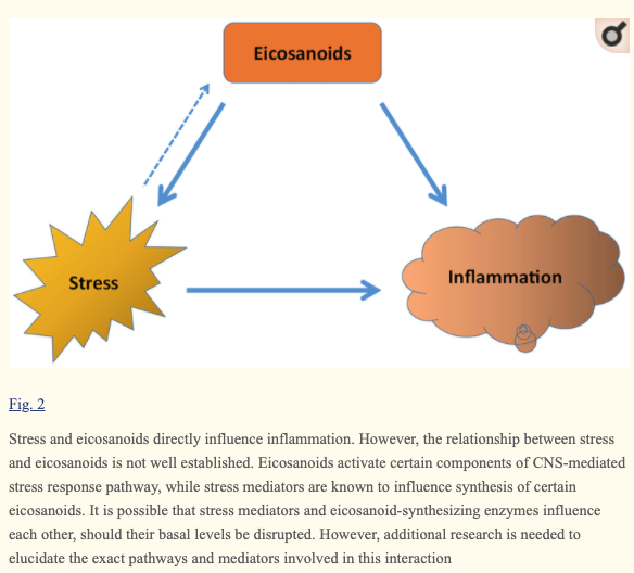 스트레스와 eicosanoids의 관계는 잘 밝혀져 있지 않음.
