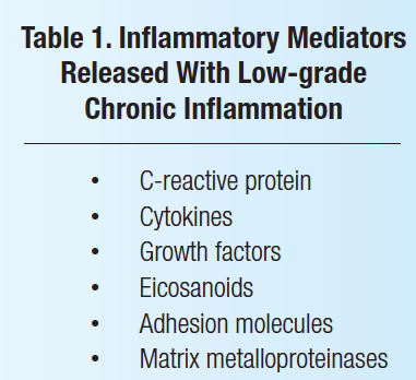 Low-grade chronic inflammation is now known to be a driver of most chronic degenerative diseases.1-14 It is important to understand that low-grade chronic inflammation is not associated with an obvious injury or infection (ie, acute inflammation) and does not predictably resolve.1,2,27 Low-grade chronic inflammation manifests itself both locally and systemically due to the increased cellular release of a variety of inflammatory mediators (Table 1).