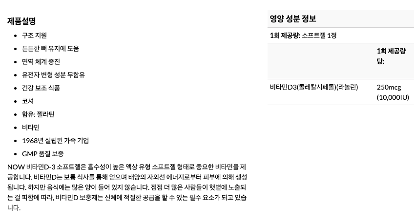비타민 D 1만 iu는 250mcg단위와 같습니다.