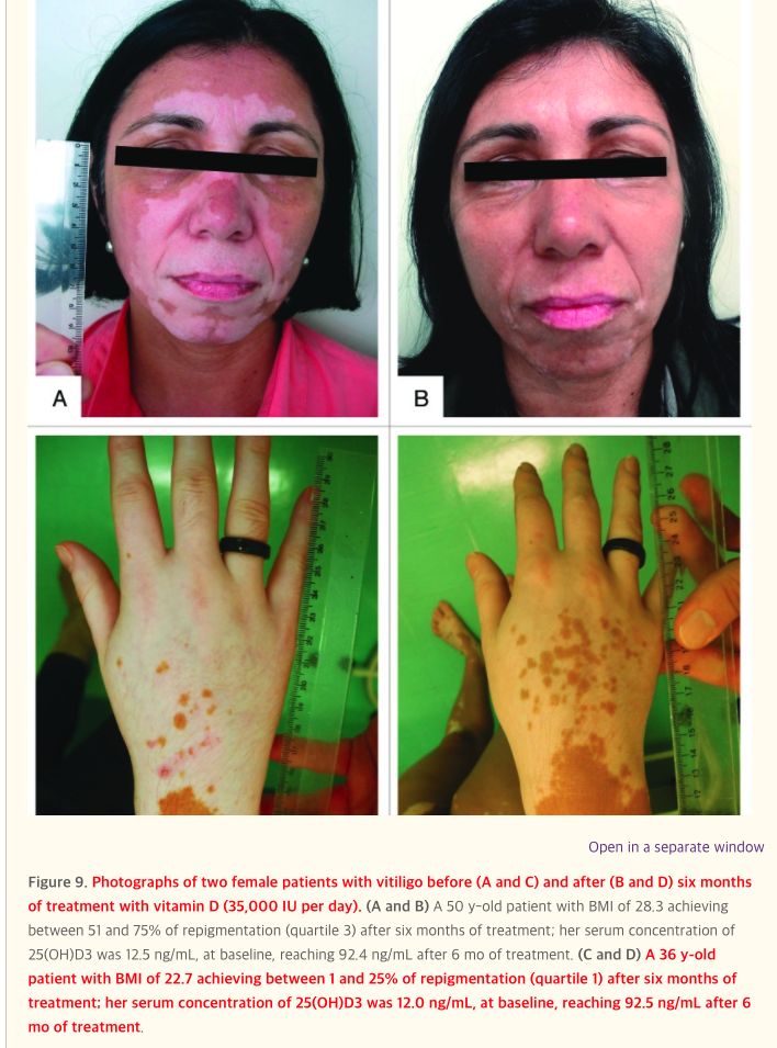 C-D 백반증환자(36세) 매일 3만5천iu 6개월 복용 12 --> 92.5까지 올려 백반증 증상개선