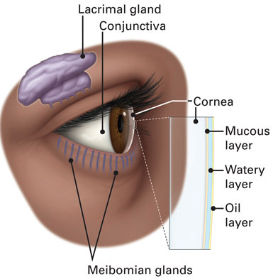 Around 10% of patients with dry eye have a solely aqueous-deficient disorder. Hyperevaporative disorders, mostly caused by dysfunction of the meibomian glands, and mixed hyperevaporative/aqueous-deficient forms account for more than 80% of cases