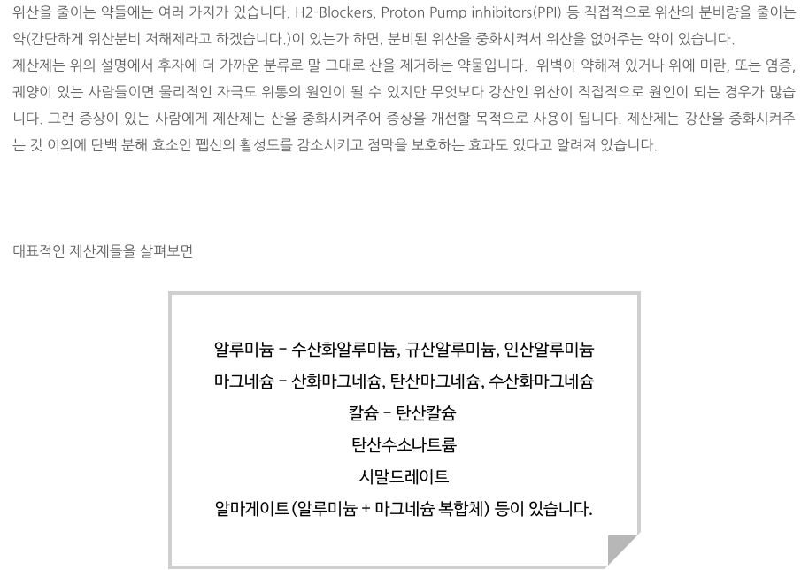 --> 많은 사람들이 제산제나 위산억제제를 복용하는 경우가 많은데 잘못된 상식임.