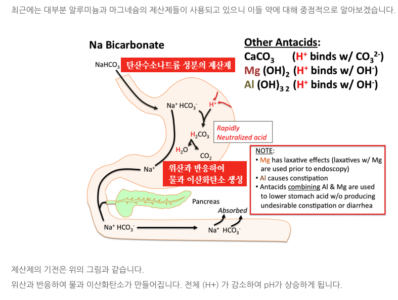 참고) 제산제는 2주이상 복용하지 않아야 함(사용설명서를 반드시 참고해야)