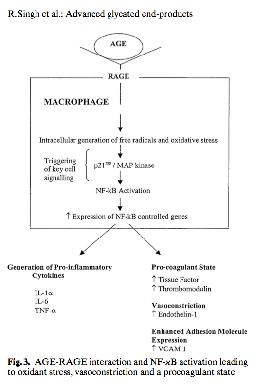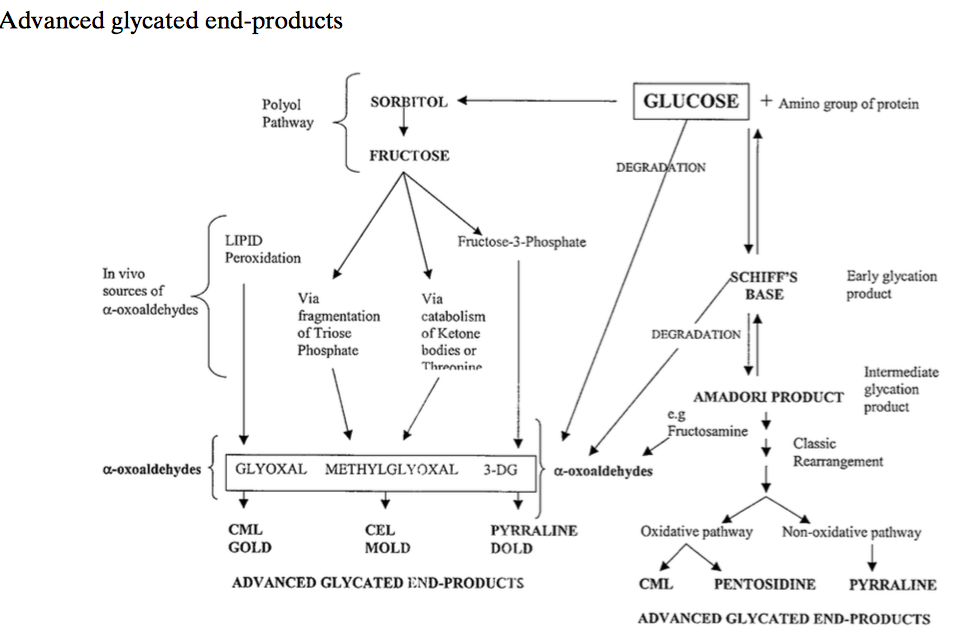 에이지는 당화에 이어 마이야르 반응을 거치는 당화반응의 최종산물로 음식을 조리할때 포도당, 과당, 유당(유제품)과 같은 단당류와 단백질 또는 단백질 지방(Amine-containing lipid)이 반응해 생기는 독소임. 음식을 통해 이 독소를 섭취하면 고스란히 몸속 조직에 붙어 염증을 일으키기 때문에 심혈관계 질병과 당뇨합병증, 섬유근육통 등을 유발하며 노화가 가속화 됨.