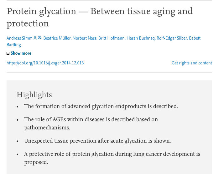 In summary, this indicates that protein glycation behaves like a double-edged sword. It induces tissue aging and degenerative diseases on the one hand, on the other hand, may also have protective effects, indicating a hormetic response.