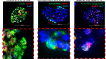 The pathogenesis of type 1 diabetes mellitus (T1D) entails autoimmune destruction of pancreatic beta cells1,2,3. Once hyperglycemia appears, more than 70% of islet beta cell mass has been eradicated4. Proliferation of surviving β-cells, pancreatic progenitor cells, plus transdifferentiation of alpha, acinar, ductal or hepatic cells, all have the potential to revitalize insulin production5,6.