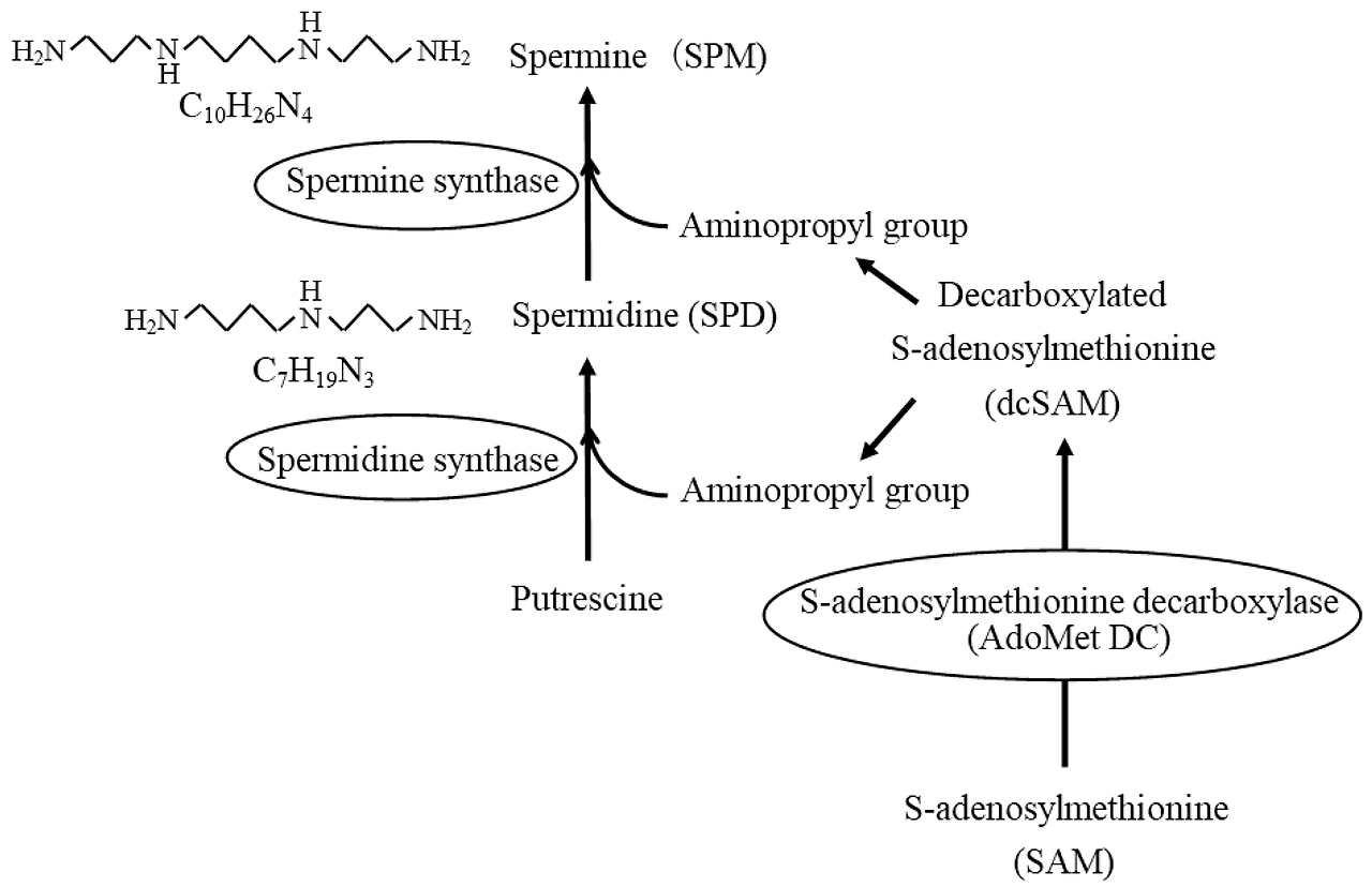 푸트레신(Put), 스페르미딘(Spd), 스페르민(Spm).