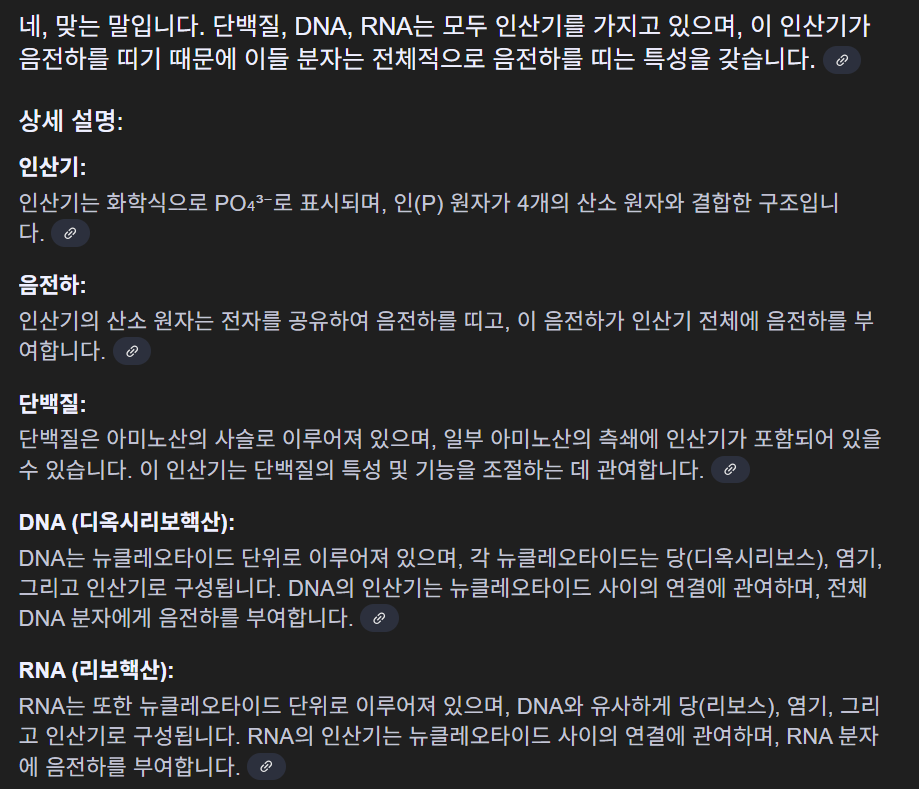 단백질, DNA, RAN는 인산기를 가지고 있어서