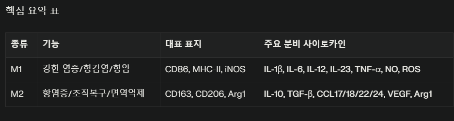 T-헬퍼-2(Th2), M2 대식세포, 조절 T 세포(Treg)의 분화 경로를 변화시켜