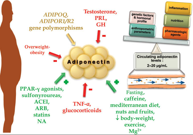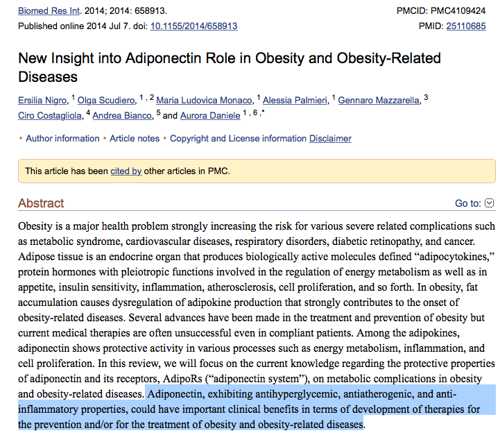 - 혈중 아디포넥틴 농도가 높을수록 날씬하고 비만인 사람의 경우 이 호르몬 수치가 낮음.