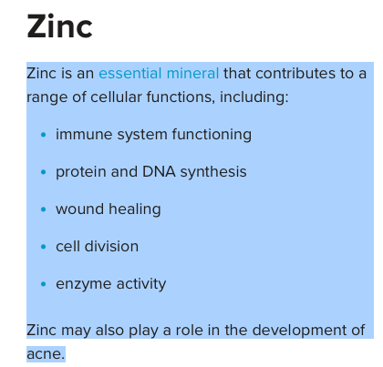 - 여드름을 치료하기 위해 아연은 하루 30~150mg씩 8-12주 복용하면 효과