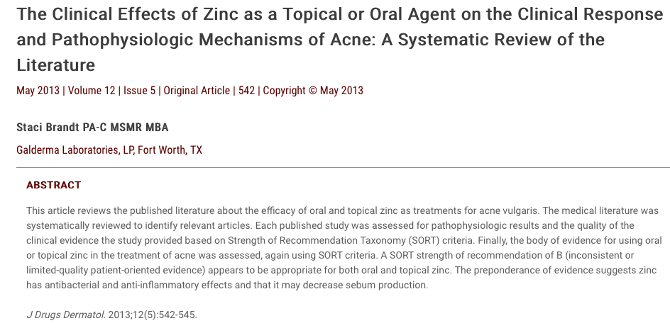 - 아연은 고드름이 차는 농포성 여드름에 더욱 효과적임