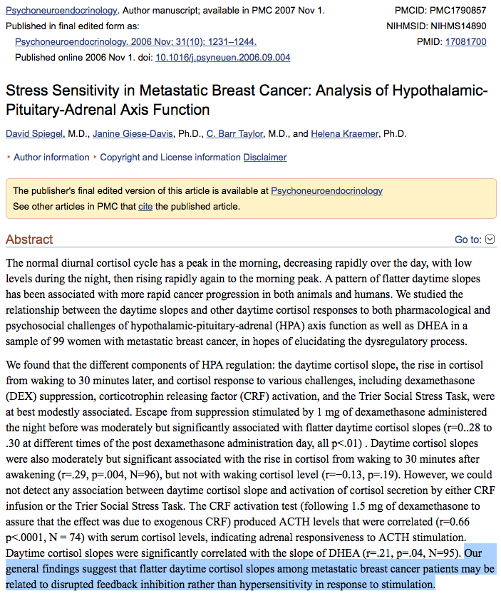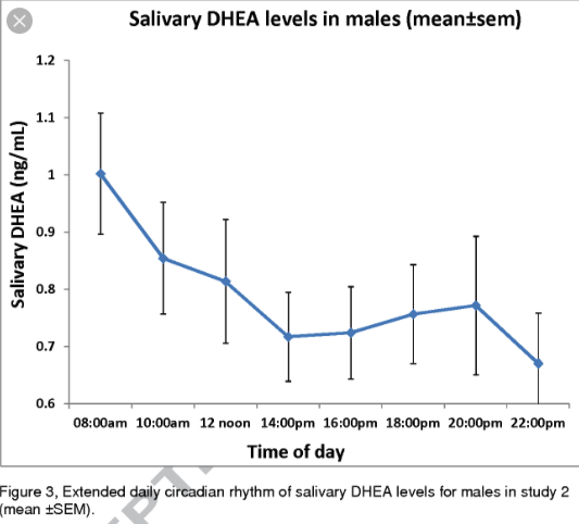 - 저녁에 높은 코티졸과 낮은 DHEA는 유방암과 연관이 있다는 연구가 있음.