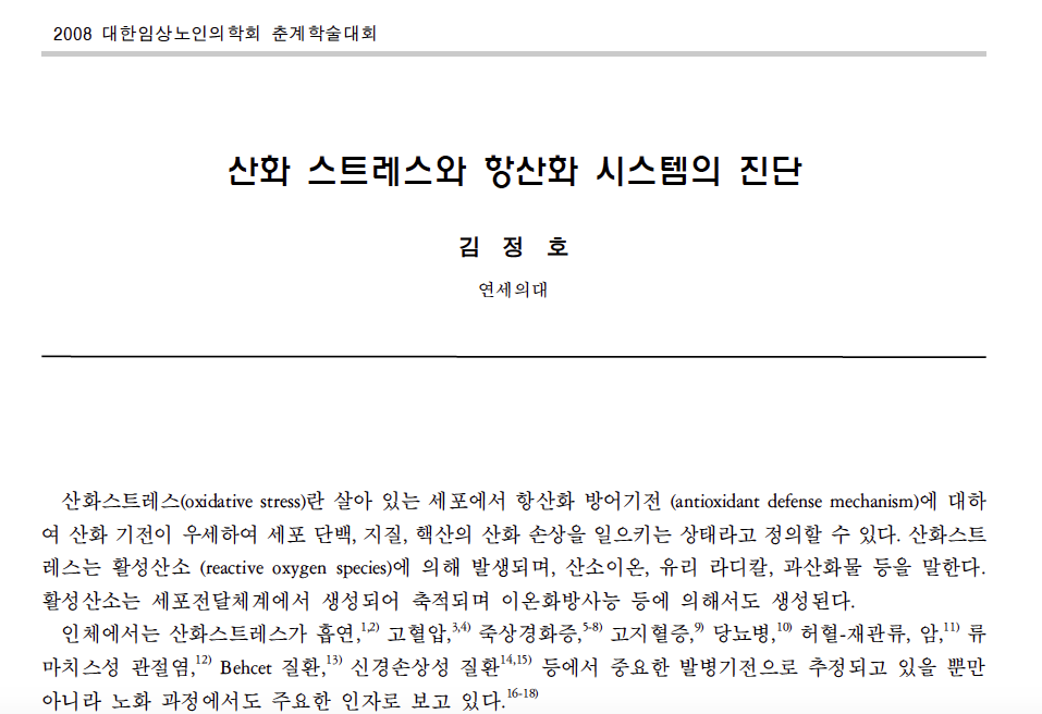 위와 같이 많은 산화 스트레스의 표지자 검사가 제시되었고 많은 연구가 진행되었지만 아직 임상적으로