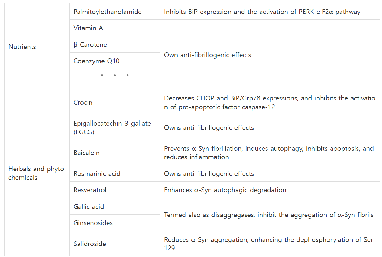 The unconventional approach based on nutraceuticals and/or supplements has becoming more and more frequent. Many nutraceuticals from natural sources have been substantiated to provide neuroprotection in experimental models through a specific mechanism of action or acting through multiple mechanistic pathways. Therefore, due to the multifactorial pathogenic nature underpinning PD symptoms, biological events that can be targeted by these therapeutic supplements are multiple, i.e. mitochondrial dysfunction, neuroinflammation, oxidative stress, endoplasmic reticulum (ER) stress, α-Syn aggregation and protein misfolding, and modulation of the gut-brain axis.