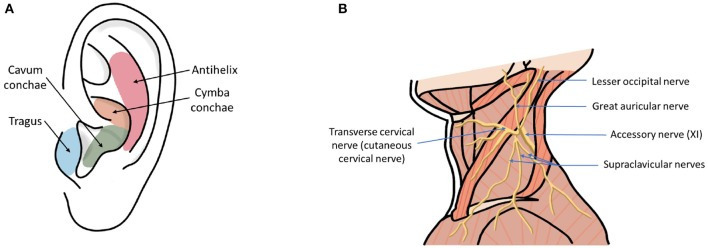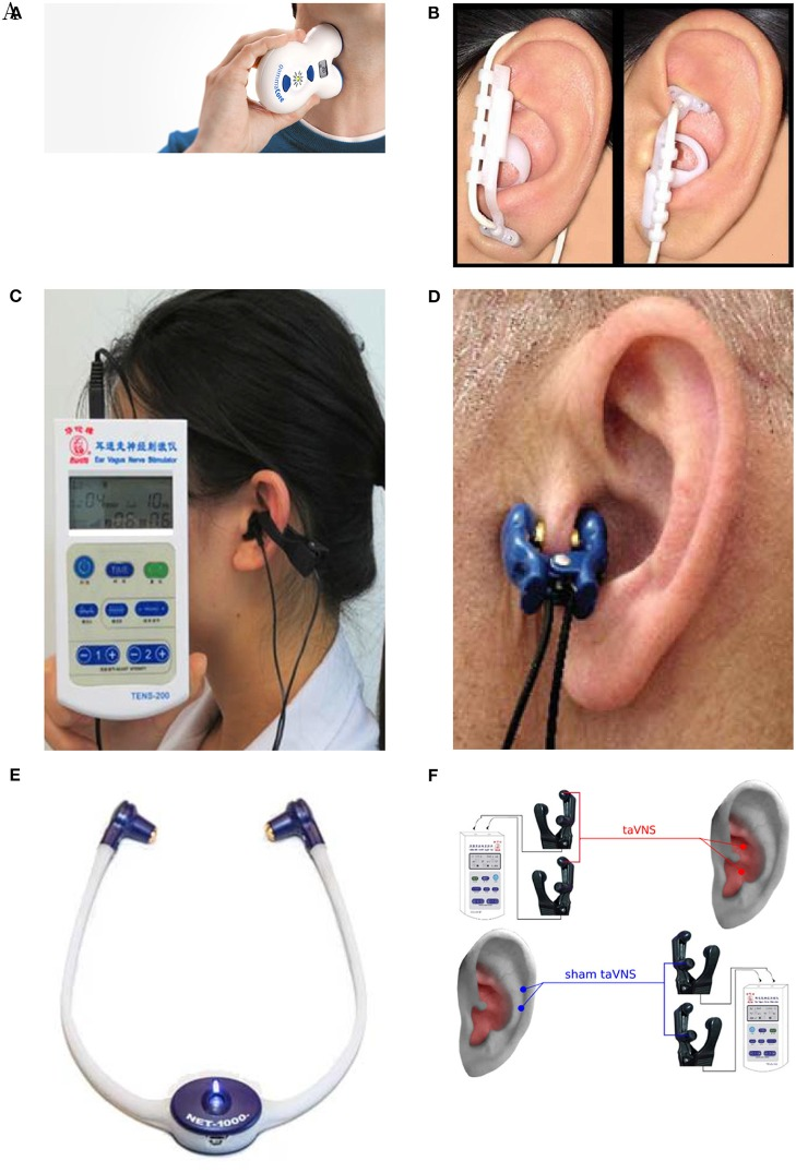 원칙적으로 두 가지 유형의 nVNS 장치가 시판되고 있습니다. 경피적 귀 VNS(taVNS)는 미주신경의 귀 가지(ABVN)에 의해 자극되는 이소골 및 심바소체와 같은 외이의 구조를 자극하는 데 사용됩니다[인용11]. 이와 대조적으로 경피 경추 VNS(tcVNS)는 경동맥 피복 내의 미주 신경의 (왼쪽) 경추 가지를 간접적으로 자극하면서 휴대용 장치를 통해 전달됩니다[인용12]. 가장 시급한 문제는 전류 강도(밀리암페어[mA]), 주파수(헤르츠[Hz]), 펄스 폭(마이크로초[µs]), 파형 형태(사인, 직사각형), 주기 지속 시간(온/오프 주기) 및 최적 용량과 같은 최적의 자극 파라미터를 식별하는 것입니다. taVNS 장치를 사용하는 연구에 사용된 자극 매개변수는 매우 다양합니다(독자들은 Farmer와 동료들의 훌륭하고 포괄적인 리뷰를 참조하세요[인용10]).