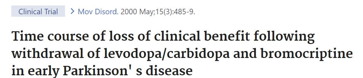 레보도파를 투여한그룹이 위약그룹보다 파킨슨병 진행도가 늦춰졌다는 논문...