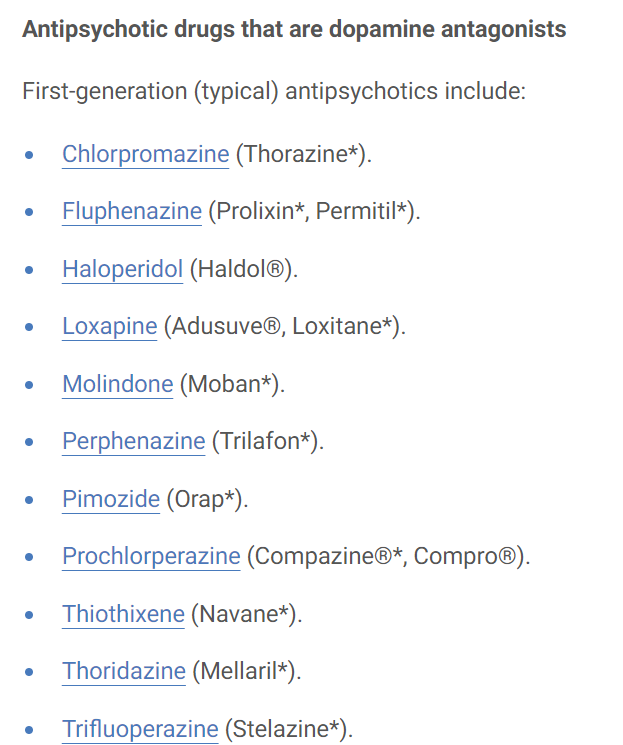 즉 1세대 항정신병약물인 할로페리돌과 페노티아진 신경 이완제(neuroleptics)는