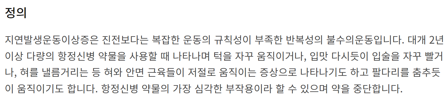 지체성 운동 이상증 tardive dyskinesia이 있습니다.