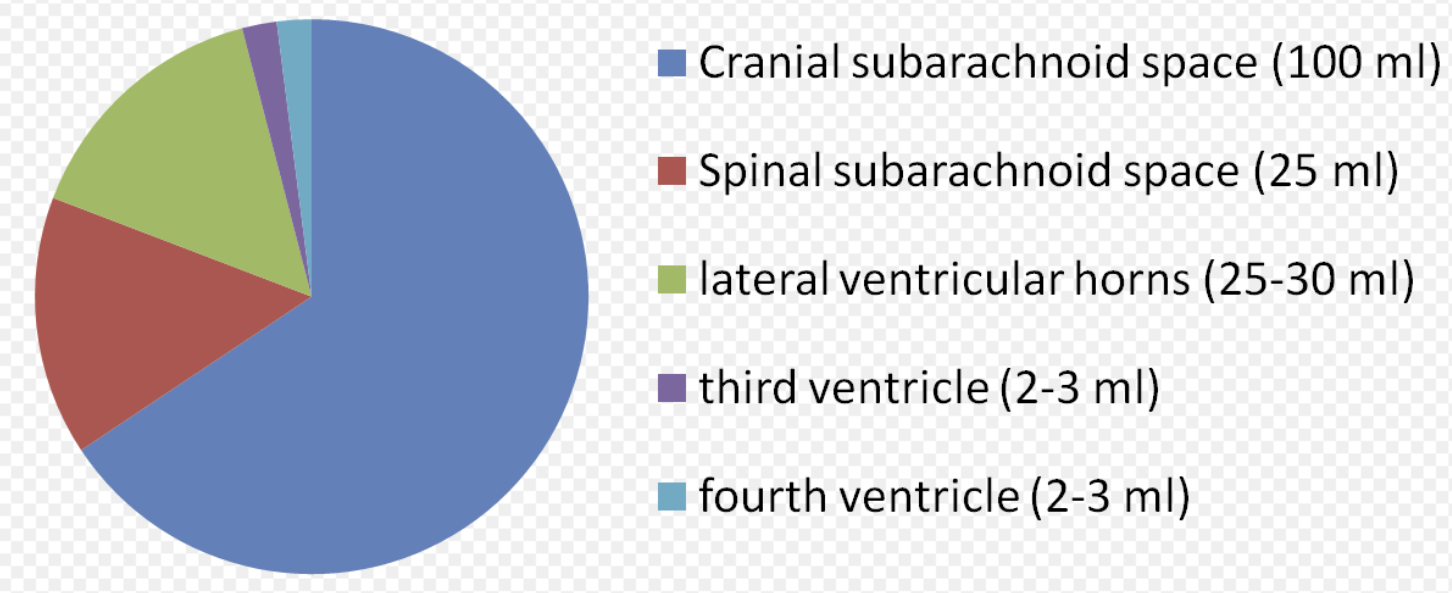 - 주 생성 부위: 뇌실의 맥락총락(choroid plexus)에서