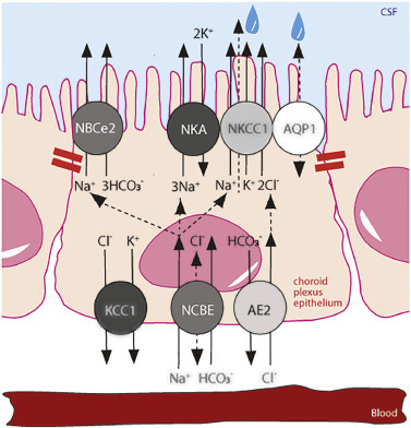 다양한 막 수송체의 공동 노력으로 뇌척수액 분비가 유지됩니다.