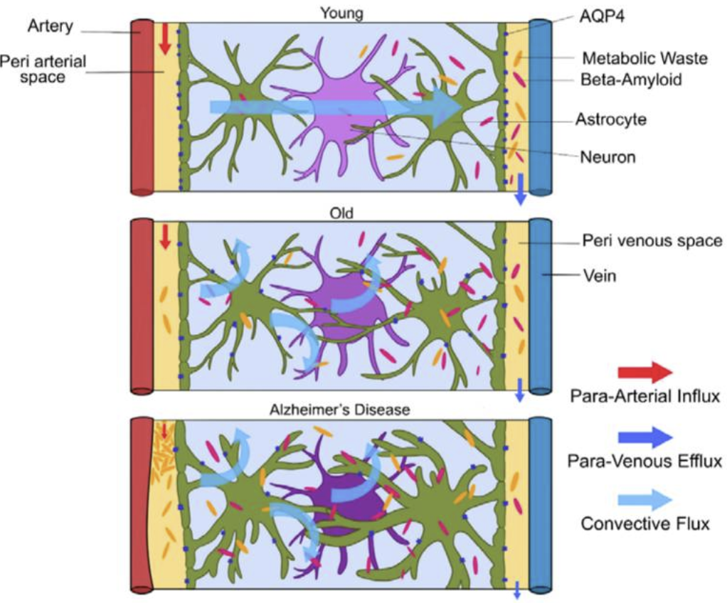 - 2012년 발견된 파라혈관(paravascular) 경로로, 주로 수면 중 활성화되어 대사 노폐물(beta-amyloid 등) 제거.