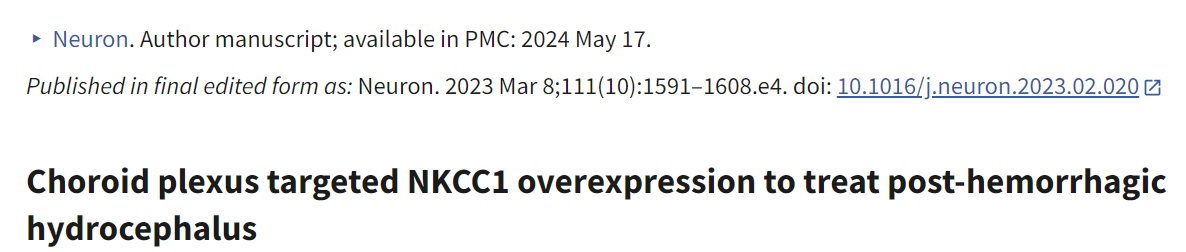 뇌실막에서 Na–K–Cl 공수송체 1의 과발현이