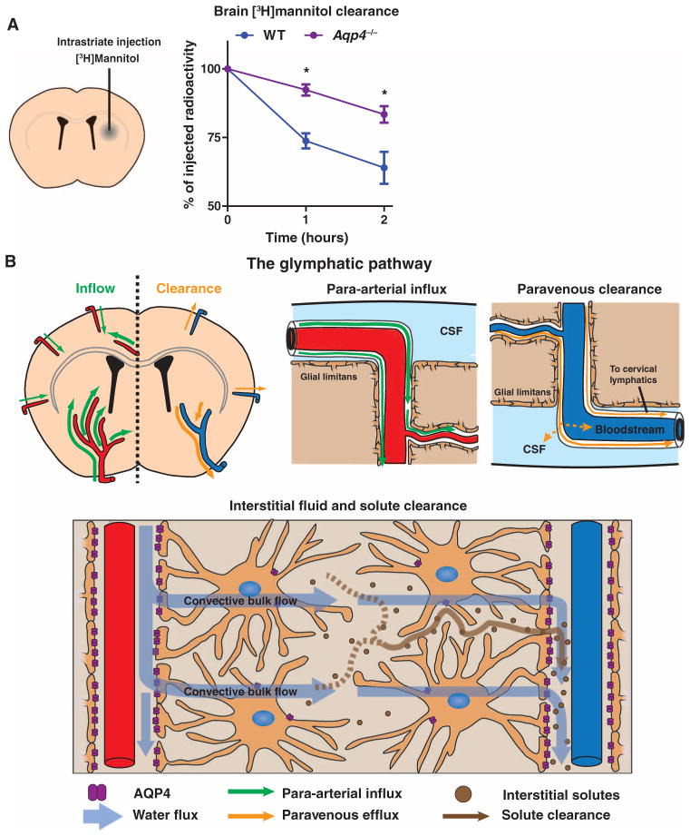 아쿠아포린-4(AQP4) 채널을 통해 CSF를 교환하는 글리프마틱 시스템을 갖추고 있음을 밝혀내며,