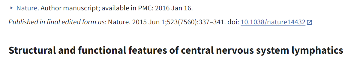그러나 그의 연구는 영어로 번역되지 않아 과학계에서 널리 알려지거나 인정받지 못했습니다. 따라서 2015년 이전까지 과학계의 지배적인 견해는 CNS에 림프계가 존재하지 않는다는 것이었습니다. 그러나 이 기간 동안 일부 연구자들은 mLVs에 초점을 맞췄습니다.7,8,9,10,11,12