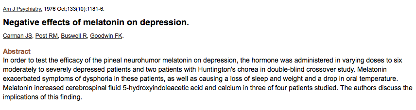 멜라토닌의 부작용으로 우울증이 있으므로 우울증환자는 주의해야 !!