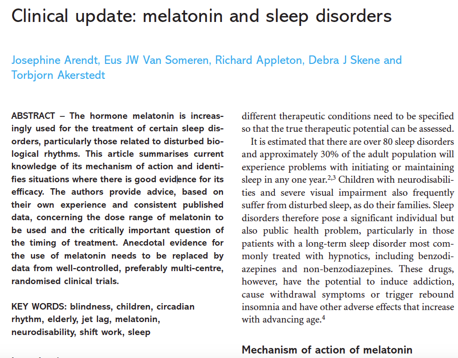 멜라토닌은 대뇌의 송과선에서 생산되는 수면촉진 호르몬(neurohormone)