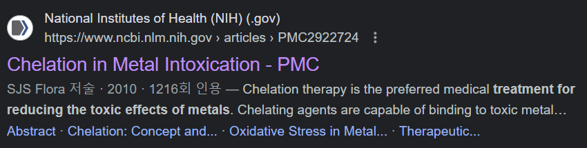 금속의 독성 영향을 줄이기 위해 선호되는 치료법입니다.