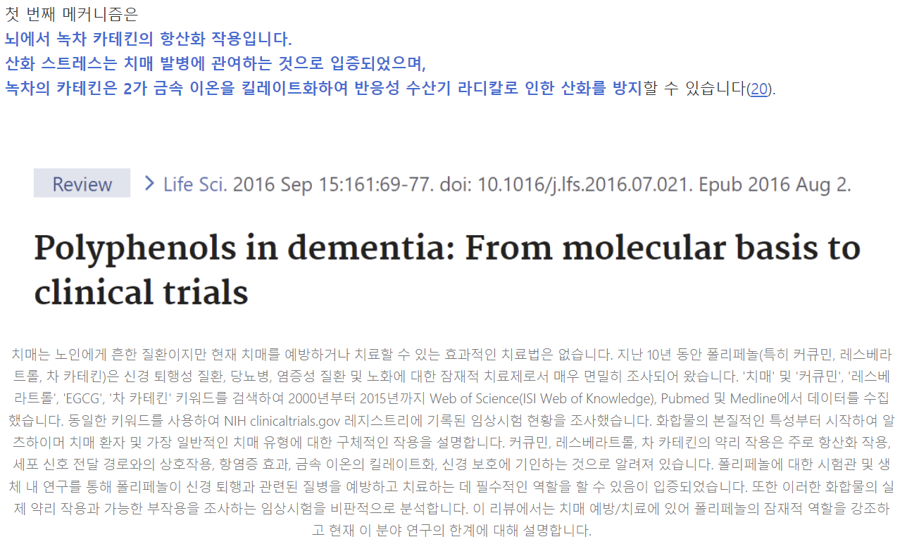 녹차의 파킨슨 치료 효과를 탐구하다가..