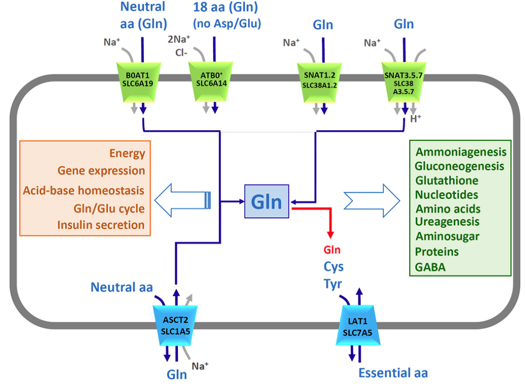 11. Scalise M, Pochini L, Galluccio M, Indiveri C. Glutamine transport. From energy supply to sensing and beyond. Biochim Biophys Acta (2016) 1857(8):1147–57. doi:10.1016/j.bbabio.2016.03.006