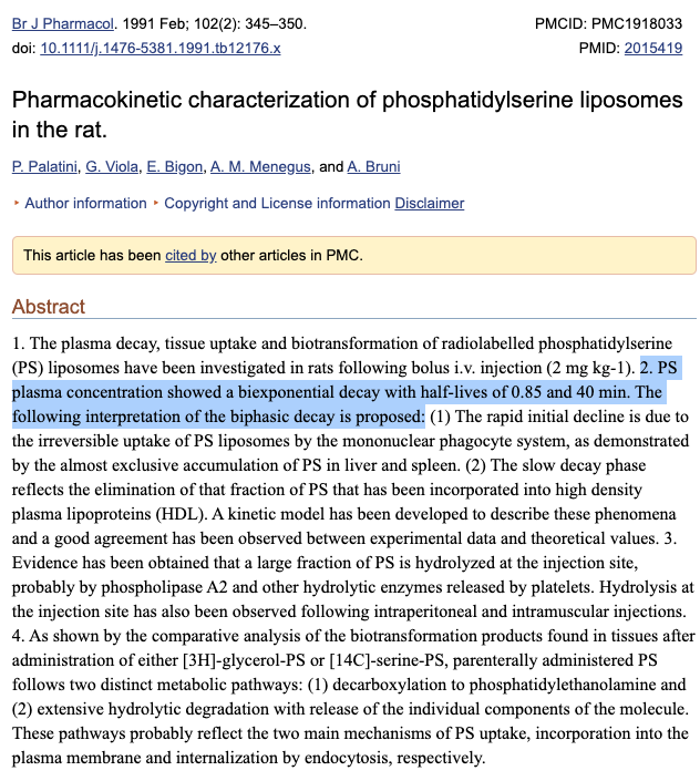 PS plasma concentration showed a biexponential decay with half-lives of 0.85 and 40 min.
