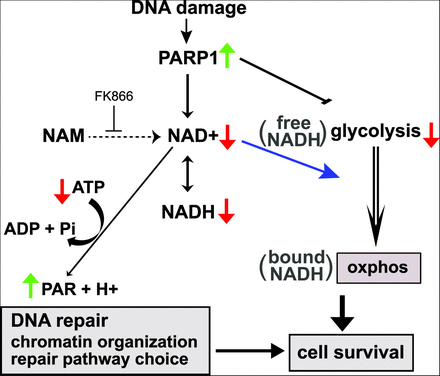 폴리-ADP-리보스 중합효소(PARP)의 보조 인자이기도 하며,