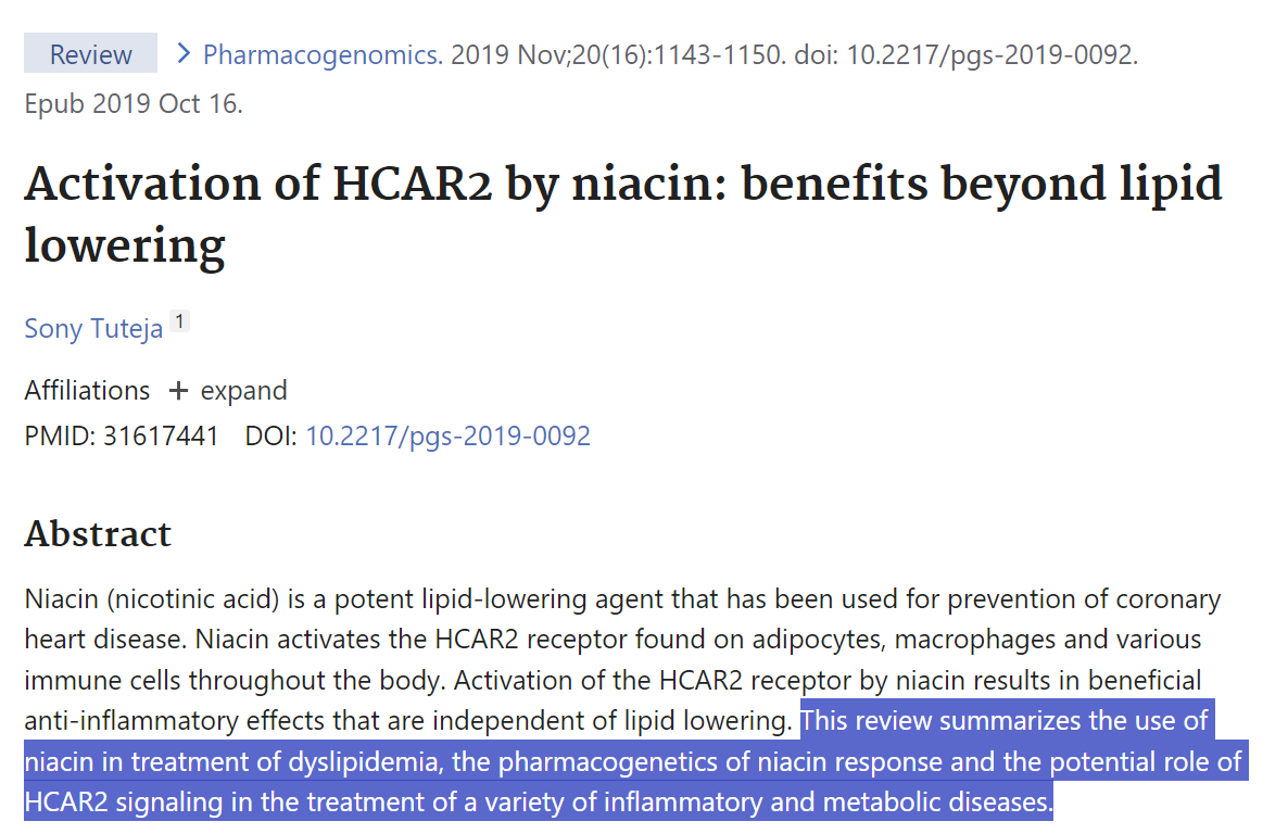 HCAR2 was originally identified as a niacin receptor, spurring efforts to develop more specific agonists to capture the therapeutic benefits of niacin on cardiovascular risk or glycemic control that were thought to be due to HCAR2’s effects on the levels of free fatty acid in blood. An HCAR2 agonist, GSK256073, transiently reduces levels of free fatty acids in blood but has only a modest effect on glycemic control in type 2 diabetes mellitus (20). Two other HCAR2 agonists similarly lowered free fatty acids but without otherwise altering the lipid profile in humans, while niacin was found to produce beneficial changes to the lipid profile in Hcar2 knockout mice (69). Thus, the model that niacin (and by extension BHB) exerts beneficial effects on cardiovascular risk through activation of HCAR2 in adipose tissue is probably too simplistic. It may even be the case that other cell types such as macrophages might mediate the therapeutic effects of HCAR2 agonists (30).