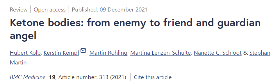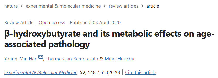 케톤체 BHB는 포도당 저장 에너지 운반체로서의 역할 외에도 다양한 분자 신호 기능을 발현하여 광범위한 인간 질병에 영향을 미칠 수 있습니다. 모델 유기체에서 제2형 당뇨병과 알츠하이머 치매를 비롯한 몇 가지 중요한 인간 질병에 대한 충분한 증거가 있어 BHB에 대한 인간 연구 또는 BHB 모방 개입을 정당화할 수 있습니다. 연령과 관련된 질병과 BHB 신호의 영향을 받는 경로의 다양성은 BHB에서 파생된 치료법이 인간의 건강 수명과 회복력을 광범위하게 향상시킬 수 있는 가능성을 시사합니다(91).
