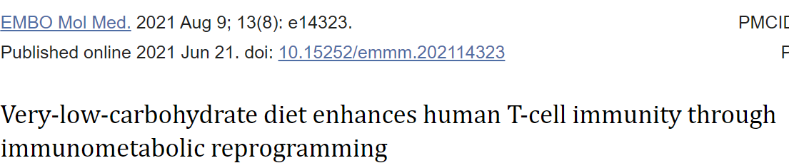 22. Hirschberger S, Straus G, Effinger D, Marstaller X, Ferstl A, Müller MB, et al.. Very-Low-Carbohydrate Diet Enhances Human T-Cell Immunity Through Immunometabolic Reprogramming. EMBO Mol Med (2021) 13:e14323. doi: 10.15252/emmm.202114323 [PMC free article] [PubMed] [CrossRef] [Google Scholar]
