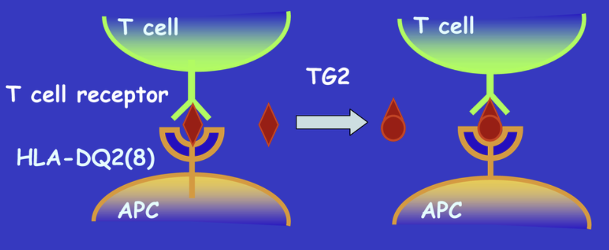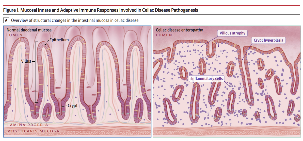 이는 셀리악병에서 HLA에 의한 적응성 면역반응의 징후로 나타나는 특징입니다.