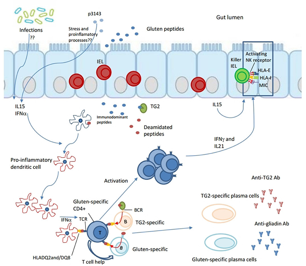 비셀리악병 글루텐 과민증의 발병 기전에서