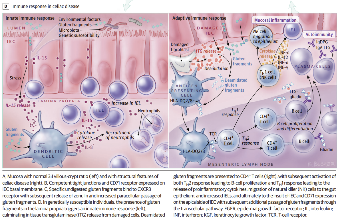 글루텐 관련 질환의 선천성 면역 반응에 중요한 역할을 하는 것으로 추정됩니다. 22