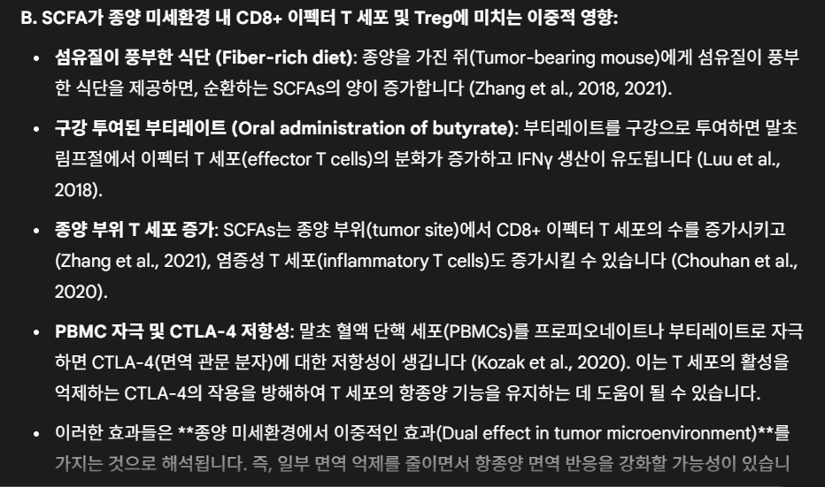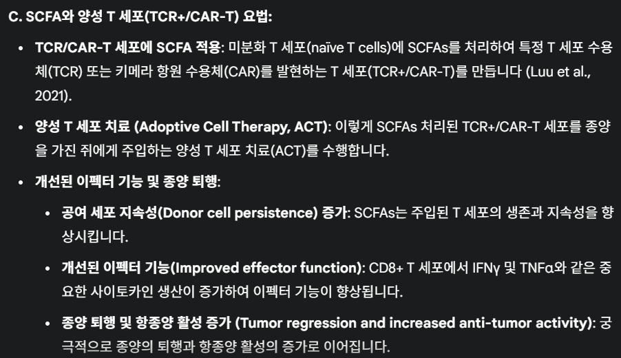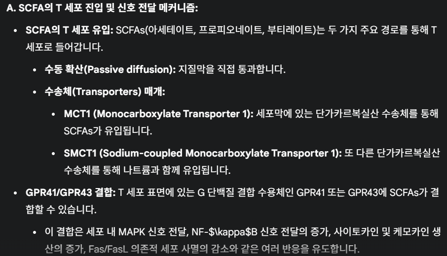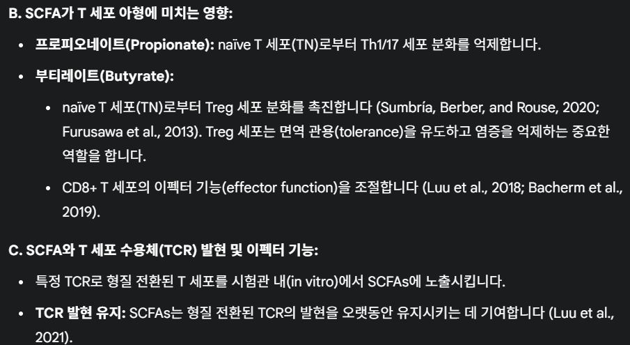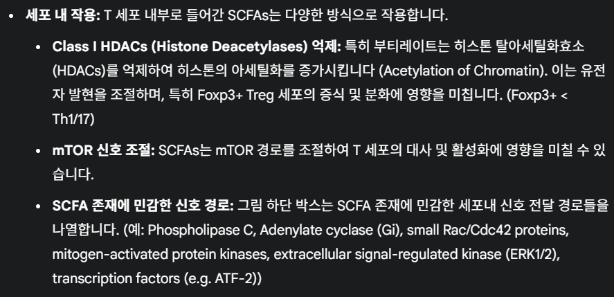 SCFAs: T 세포에서의 메커니즘과 특이성