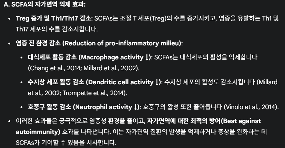 SCFAs를 면역 조절제로 사용하기 위한 잠재적 이점과 한계점을 강조하고,