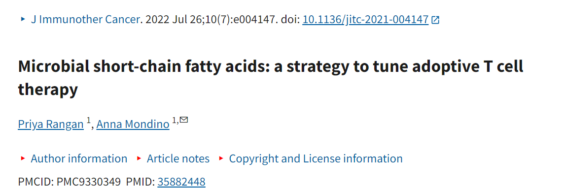 Microbial short-chain fatty acids: a strategy to tune adoptive T cell therapy