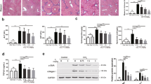 The secretion of inflammatory cytokines from Kupffer cells was accompanied by the progression of liver fibrosis, which has an essential role in the pathogenesis of several liver diseases48. Liver fibrosis is characterized by alterations of the hepatic ECM. After the activation of quiescent HSCs they are differentiated into myofibroblast-like cells with increased proliferation, accumulation of ECM, and expression of α-SMA. Therefore, collagen accumulation in the liver is considered to be a mark of fibrosis49. α-SMA is the most widely used marker of activation of HSCs50.